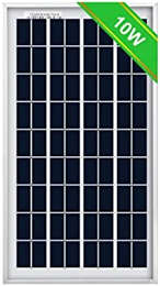 ECO-WORTHY this 10W 12V Monocrystalline Solar Panel widely used on small dry camp and off-grid lighting applications. Waterproof IP-65 Rated Junction Box. Advanced water and dust proof level (complete protection against environmental particles and low pressure water jets). Pre-drilled holes on the back of the panel allow for fast mounting and securing. Corrosion-resistant aluminum frame for extended outdoor use, allowing the panels to last for decades as well as withstand high winds (2400Pa) and snow loads (5400Pa), Lightweight anodized aluminum frame and reinforced Safety and anti-Reflection coated glass 3.2mm thick (tempered + patterned).