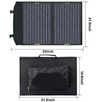 60W Foldable Mono Solar Panel Rated Power: 60W Open Circuit Voltage: 21.6V Maximum Voltage: 18V Maximum Current: 3.6A Folded Size: 21.5*14.6*1.2inches Extended Size: 31.1*21.5*0.2inches |